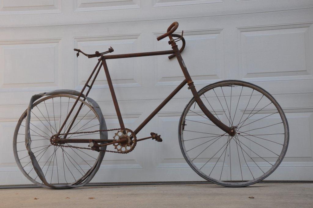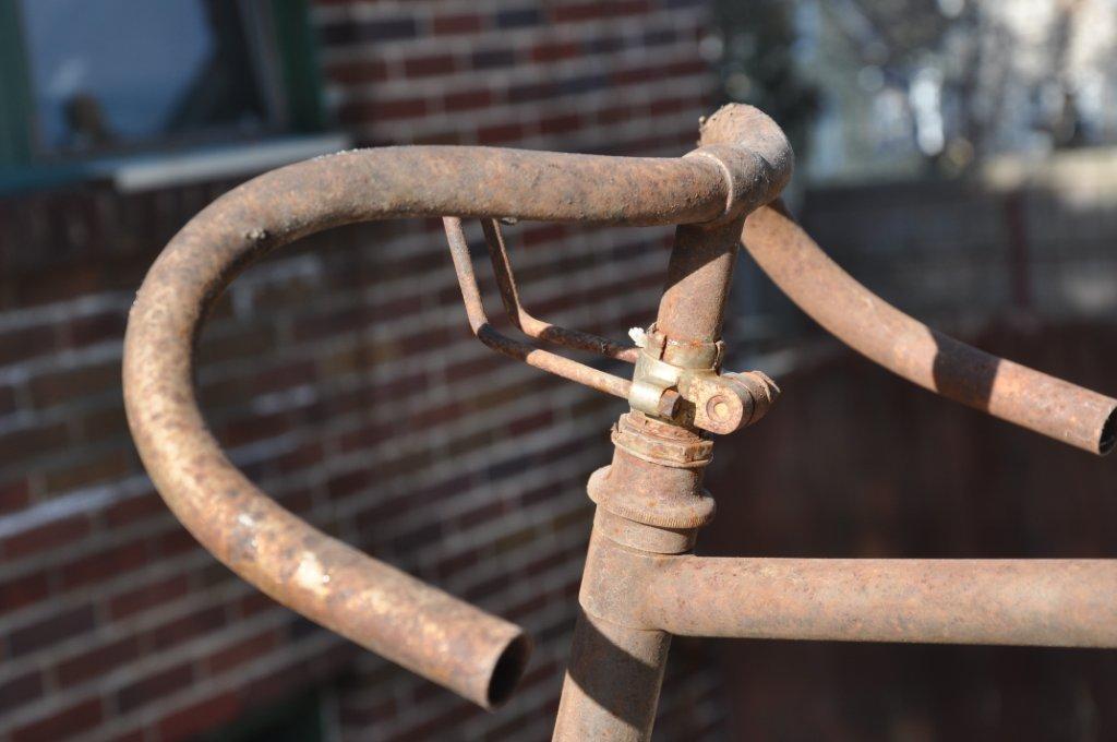This is really a strange story. This totally original Victor 1894 has been hanging from a tree for some time in Illinois! But soon enough the local government ordered to get this ugly rusty bike down, calling it an eyesore. It spoilt the local scenery. Niels Wolter was the lucky man who bought it and added it to his collection.